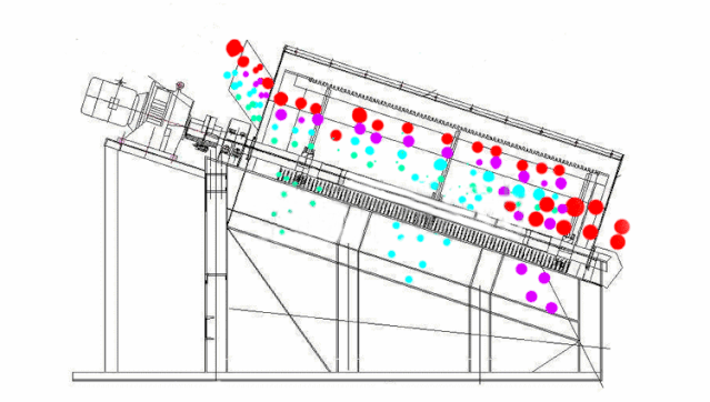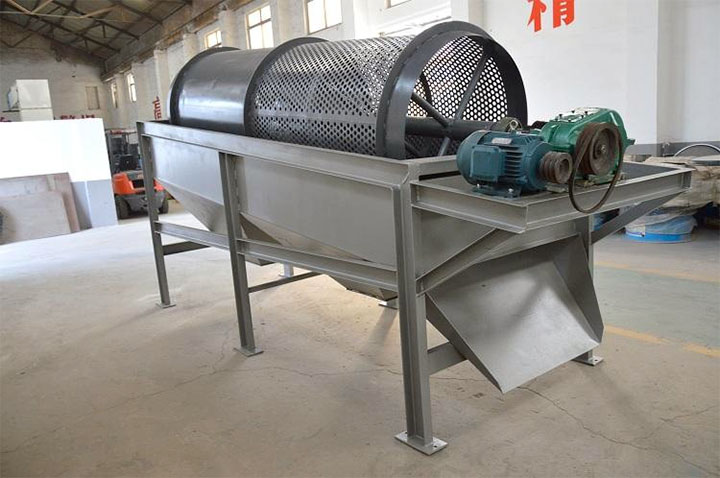 滚筒筛筛石粉启动后,由电驱动滚筒旋转,石粉从进料端进入旋转的筛筒内,在旋转的作用下,小于筛孔的石粉透过筛网成为筛下物,而大颗粒或结团物料则沿筛面滑动,最终从出料口排出成为筛下物,依次就能将石粉从细到粗进行筛分。