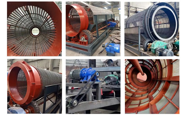 滚筒筛筛石粉是由滚筒,筛网,支撑环,导料板/叶片,驱动系统,驱支撑与旋转系统、机架、进料与出料装置组成。